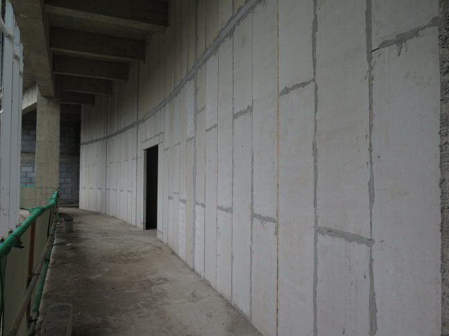 4裝板:將上好砂漿的墻板搬到裝拼位置立起,上下對好基線位置,用鐵撬將墻板從底部撬起用力使板與板之間靠緊。