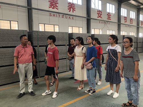 (集團(tuán)董事長龐總帶領(lǐng)學(xué)生參觀混凝土墻板生產(chǎn)線)