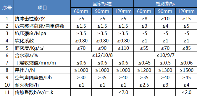 內(nèi)墻專用技術(shù)指標(biāo)