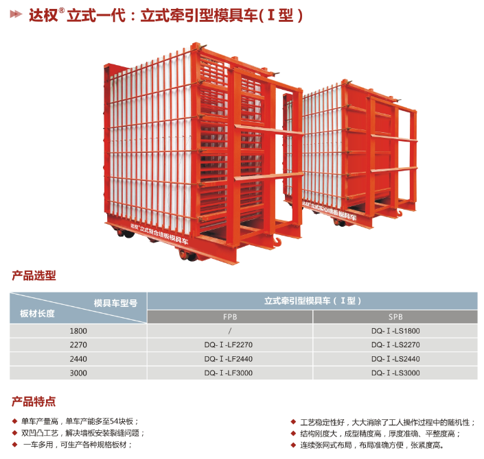 達權(quán)復(fù)合夾芯板立式模具車是達權(quán)首創(chuàng)的立式模具車,用于生產(chǎn)輕質(zhì)復(fù)合夾芯板,改變了傳統(tǒng)的臥式模具車生產(chǎn)形式,相對于傳統(tǒng)復(fù)合夾芯板臥式車,立式模具車更利于倒模拆模,大大提高了生產(chǎn)效率,降低了人工成本。性能已達到國際同類產(chǎn)品的領(lǐng)先水平。免費提供本公司品牌、商標(biāo)、工藝流程的技術(shù)培訓(xùn),為建廠公司(合作廠家)全方位提供生產(chǎn)、安裝、銷售的扶持及服務(wù)。